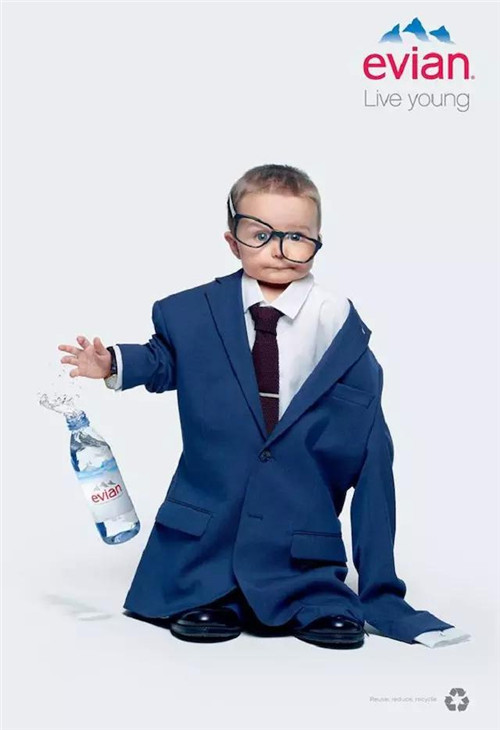 今年依云寶寶的核心創(chuàng)意在于 Oversize,即喝了依云水,就能像嬰兒一樣看待這個(gè)世界,在視覺(jué)呈現(xiàn)上,它們讓寶寶們穿上超大碼的成人時(shí)裝。如果說(shuō)衣服代表了身份的話,這些穿著時(shí)裝造型的寶寶正是依云現(xiàn)在想要吸引的年輕顧客,而用 Evian 的全球營(yíng)銷總監(jiān) Patricia Oliva 的話說(shuō),這些年輕人很可能并沒(méi)有看過(guò)當(dāng)年的依云寶寶電視廣告。