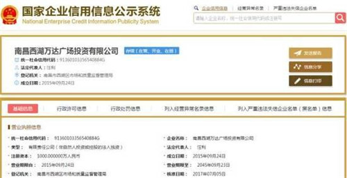 工商信息顯示,南昌西湖萬達廣場、鹽城萬達廣場兩家公司法定代表人均在今年發(fā)生變更。