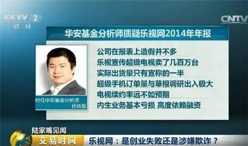 2015年6月,華安基金分析師楊曉磊公開質(zhì)疑樂視2014你年報,他認為公司在報表上的造假并不多,但據(jù)測算,樂視宣傳超級電視賣了幾百萬臺,但實際出貨量只有宣稱的一半、超級手機訂單量也與草根調(diào)研數(shù)據(jù)出入極大,電視續(xù)約率遠不如預(yù)期,內(nèi)生業(yè)務(wù)基本虧損,高度依賴融資。