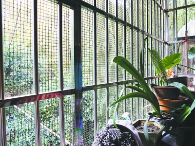 星星家的陽(yáng)臺(tái)、窗戶全都圍著細(xì)細(xì)密密的鐵絲網(wǎng)。