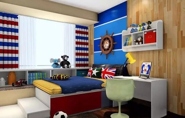 “這是一個(gè)男孩房設(shè)計(jì),空間雖不大但是格局方正。設(shè)計(jì)師把榻榻米和飄窗一起裝進(jìn)這個(gè)兒童房,不僅有了1.5米的床還能留出較寬敞的活動(dòng)空間!”