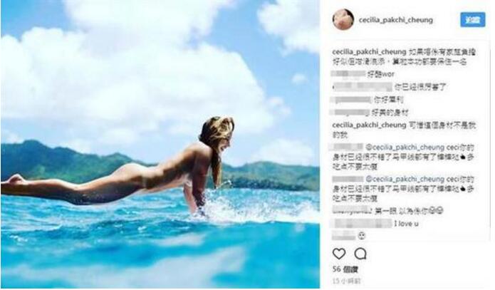 平時愛運(yùn)動的張柏芝,時常曬出美照,5日她PO出外國模特兒裸照寫下:“如果不是有家庭負(fù)擔(dān),好想她這樣滑浪”。似乎也想放縱一下,網(wǎng)友大贊這身材超美,她感嘆說:“可惜不是我的”,可見對自己要求頗高。