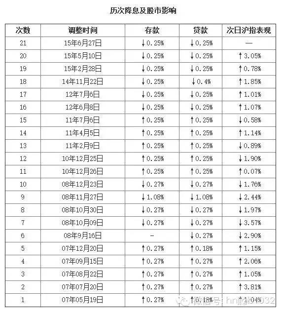 這是媒體整理的歷次降息對股市的影響數據,有漲有降。最高的漲幅達到了3.81%,最大降幅是3.27%。