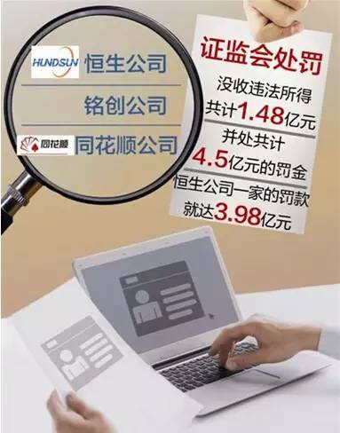 根據(jù)公告,恒生、銘創(chuàng)、同花順等3公司,因涉嫌非法經(jīng)營(yíng)證券業(yè)務(wù),獲取非法收益,嚴(yán)重?cái)_亂證券市場(chǎng)秩序。證監(jiān)會(huì)依法沒(méi)收涉事3公司違法所得達(dá)1.5億元,處罰金共計(jì)近4.5億元,并對(duì)相關(guān)責(zé)任人員給予警告和罰款。消息一出,有媒體將之稱(chēng)為“最狠罰單”。