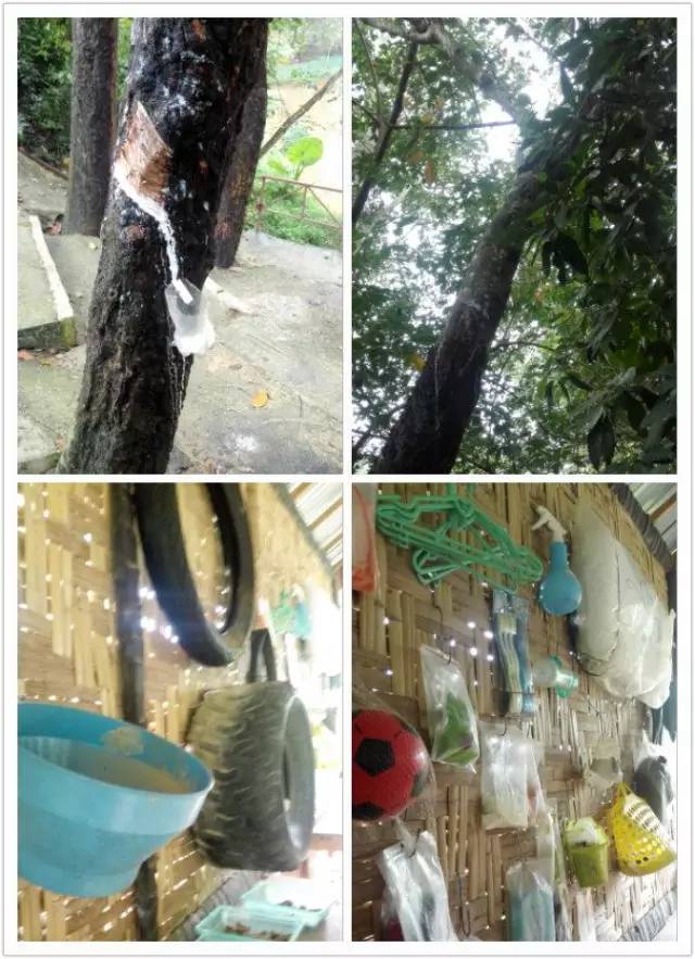 泰國從1991年起即成為世界最大的天然橡膠生產(chǎn)國和出口國。在這里隨處可見大片大片的橡膠園,據(jù)導(dǎo)游講,到了收獲季節(jié),天剛蒙蒙亮的時候,割膠工們便開始上山割膠了,太陽一出來,膠汁就不流了。膠林里萬籟寂靜,耳邊聽得嚓嚓的割膠聲,乳白的乳膠順著割線流進碗里。我們常說:“一分耕耘、一分收獲!”膠農(nóng)是真的的不容易啊!