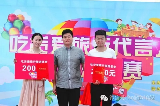 獲得第一名的選手成功簽約《吃貨愛旅行》成為代言人,由河南經(jīng)濟廣播副總監(jiān)欣悅女士上臺進行了頒獎儀式。