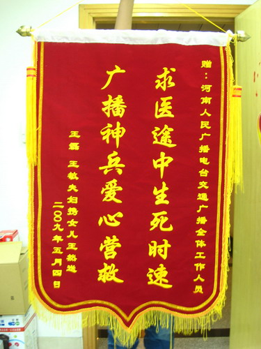 王然父母贈送給河南交通廣播的錦旗