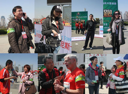在歷時四個小時的直播過程里,現(xiàn)場大型直播車就像漂浮在旗幟和人群大海洋中的帆船,顛簸在聲浪中的現(xiàn)場主持人與主直播室的主持人默契配合,共完成與現(xiàn)場記者連線20多個,分別邀請了鄭州市副市長劉東、1041跑友團、冠軍選手、情侶馬拉松參賽者、志愿者等嘉賓走進現(xiàn)場直播車,就全民健身的話題進行溝通、交流、分享。而守候在多個點位的15名現(xiàn)場記者用手機連線的方式,為聽眾傳遞出賽場激昂的心跳聲、沸騰的歡呼聲,并通過電波飛揚在春天里,彌漫在春風(fēng)中!