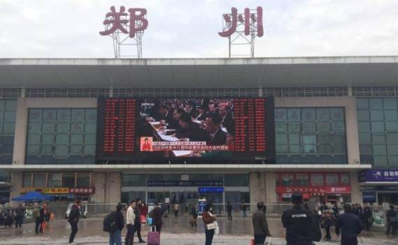 鄭州火車站廣場大屏直播十九大開幕會
