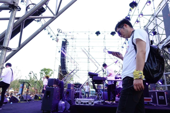 為了讓所有的樂隊順利演出,主持人丁適在后臺一站就是十幾個小時,曬到鼻尖通紅。