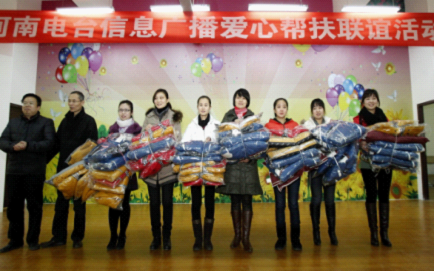 2011年12月31日,河南電臺信息廣播的領導、主持人和編輯記者來到鄭州市二七區(qū)輔讀學校,感悟命運、感受大愛、感謝生活,給孩子們送去衣服和文具,獻上動聽的心聲,與師生們一起在互動游戲中傳遞愛心,迎接新年!