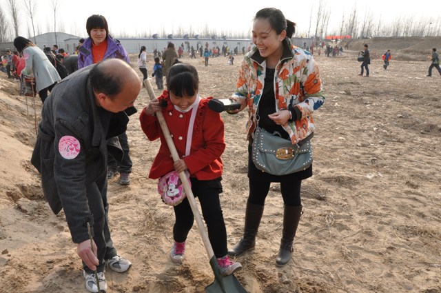 家長耐心指導(dǎo)孩子植樹技巧
