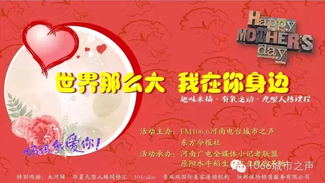 為此,F(xiàn)M106.6河南電臺城市之聲特別舉辦“世界那么大,我在你身邊”母親節(jié)活動。我們還為媽媽們準備了一份母親節(jié)禮物,九型人格課程“懂她比愛她更重要”!這份禮物不重,但很暖心。