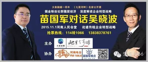 對話吳曉波,作為關注社會,運籌帷幄的社會精英怎會不心動?你想提問嗎?在微信平臺“駕車1066”留下您的問題,苗國軍將把您的精彩問題帶到現(xiàn)場。