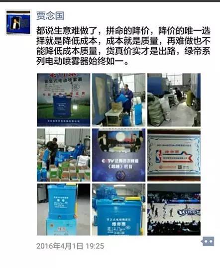 賈念國(guó)就是這樣一位在農(nóng)資行業(yè)里電動(dòng)噴霧器方面的領(lǐng)軍人物,在農(nóng)資行業(yè)摸爬滾打二十年,近二十年來(lái)只專(zhuān)注一件事,那就是電動(dòng)噴霧器的研發(fā)與銷(xiāo)售。