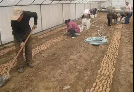 紅薯入棚后,地上澆一次水,棚上蓋上草簾.越冬期棚內(nèi)當氣溫降至9 ℃ --10℃時,薯堆上開始蓋一層棉墊即可保溫,中、后期,薯堆保持10 ℃ - 12℃, 若薯堆低于此溫,利用睛天拉開大棚上草簾,增溫后,草簾拉下,保持10 ℃ - 12℃。