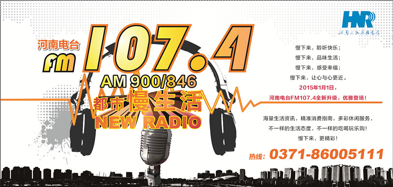 2015年1月1日,河南電臺FM107.4慢生活NewRadio全新升級,優(yōu)雅登場!海量生活資訊,精準消費指南,多彩休閑服務,不一樣的生活態(tài)度,不一樣的吃喝玩樂購!慢下來,我的“心”常態(tài)!河南電臺1074慢生活NewRadio(FM107.4 AM900/846)。
