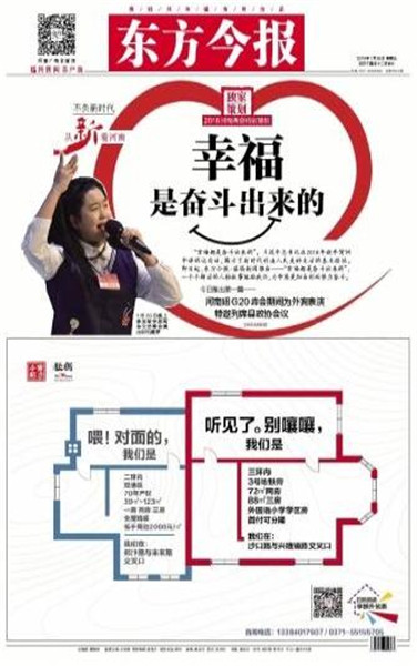 同時,東方今報還推出2018河南兩會特別策劃——“幸福都是奮斗出來的”,側重報道正在奮斗且勵志的社會中堅力量,一個個鮮活的人物故事勉勵我們,為中原更加出彩而努力奮斗。截至目前已刊登四篇報道,分別是《幸福是奮斗出來的系列報道之(1) 河南妞兩次為“彭媽媽”表演 特邀列席縣政協(xié)會議》《幸福是奮斗出來的系列報道之(2) 90后辭年薪二十萬工作創(chuàng)業(yè):我的心愿是“藝術+”》《幸福是奮斗出來的系列報道之(3) “海歸農(nóng)夫”師鵬飛:現(xiàn)代農(nóng)場放飛創(chuàng)業(yè)夢》。