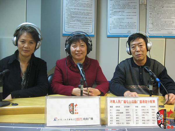 ?。ㄗ笃穑鸿鬈幩囆g(shù)團(tuán)主任聶衛(wèi)國、副團(tuán)長兼主要演員李風(fēng)莉、團(tuán)長李春友、主任魏桂愛和著名戲曲節(jié)目主持人戲曲廣播“當(dāng)家小生”月陽在直播間