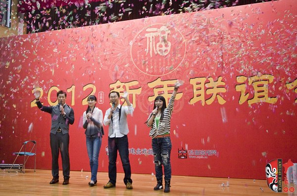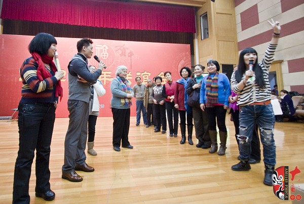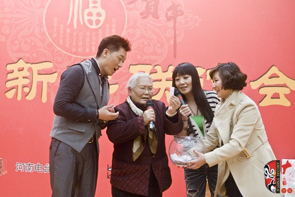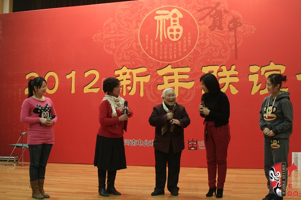 12月28日,一臺(tái)由河南藝術(shù)家及戲迷共同參與的新春聯(lián)誼會(huì)在河南廣播大廈舉行。本次活動(dòng)由河南電臺(tái)戲曲廣播、戲曲出版網(wǎng)共同舉辦。聯(lián)誼會(huì)上,老中青三代名家與戲迷歡聚一堂,氣氛異常熱烈。曾經(jīng)在電影《朝陽溝》中飾演拴保娘的豫劇名家高潔、在電影《扒瓜園》中飾演國英的越調(diào)名家劉琳,中國戲劇梅花獎(jiǎng)得主楊帥學(xué)、申小梅,豫劇《朝陽溝》中新一代“拴?!钡娘椦菡呤⒓t林,為現(xiàn)場熱情的戲迷表演了各自的拿手好戲。藝術(shù)家的精彩演唱博得現(xiàn)場觀眾叫好聲、掌聲不斷,戲曲名家與戲迷共同參與的互動(dòng)游戲使得本次聯(lián)誼會(huì)高潮迭起……當(dāng)豫劇大師馬金鳳的身影出現(xiàn)在大屏幕上時(shí),現(xiàn)場一片安靜。今年90高齡的馬金鳳大師在聽說戲迷聯(lián)誼會(huì)舉行的消息后,特別送來了新年的問候和祝福,馬老的祝福視頻播完,激動(dòng)的戲迷爆發(fā)出一陣熱烈的掌聲……戲迷趙錢孫(網(wǎng)名)專程從北京趕來參加活動(dòng),這位小伙子是越調(diào)藝術(shù)的忠實(shí)的支持者,2007年他自費(fèi)創(chuàng)辦了中國越調(diào)網(wǎng),在宣傳和推介越調(diào)劇種方面做出了杰出貢獻(xiàn)。聯(lián)誼會(huì)上,他和其他四位越調(diào)戲迷自拉自唱了越調(diào)申派名段《收姜維》中的“四千歲你莫要羞愧難當(dāng)”,博得了現(xiàn)場觀眾的熱情掌聲。85歲的戲迷、著名戲曲活動(dòng)家劉建勛老師為表達(dá)激動(dòng)的心情,特別為本次聯(lián)誼會(huì)寫了一首五言律詩,獻(xiàn)給熱情的戲迷觀眾。 “歲末二十八,大地又回春。戲迷慶元旦,賓客多如云。久別重逢日,相見格外親。你拉我來唱,鄉(xiāng)音暖人心。唱出心坎語,唱出好精神,唱出凌云志,唱響河南人。共同來祝愿:活過一百春!聯(lián)誼會(huì)結(jié)束后,很多觀眾意猶未盡,久久不愿離去,他們紛紛與自己喜愛的戲曲名家溝通交流、合影留念。多位戲迷在接受采訪時(shí)說:感謝戲曲廣播舉辦了這次聯(lián)誼會(huì),不僅給戲迷提供了交流的平臺(tái),而且拉進(jìn)了戲迷與名家的距離……(本次活動(dòng)部分照片由小草提供)