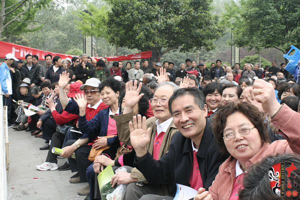 4月17日上午,在位于洛陽市中心、以體現(xiàn)周朝文化為主題的周王城廣場,“周公營建洛邑”雕塑旁,主辦方舉辦了一場別開生面的戲曲演唱會。來自鄭州、洛陽兩地的豫劇名家張月榮、曾廣蘭、趙曉梅、王藝紅,著名演員徐俊霞、陳大華、劉亞林、曲韻、劉海功、沈萍,梨園春明星擂主張艷紅、謝憲笙等為來自全省各地的戲曲廣播《戲迷俱樂部》百余位戲迷和現(xiàn)場的廣大觀眾奉獻了精彩的戲曲唱段。藝術(shù)家們演唱的《洛陽橋》、《秦雪梅》、《七品芝麻官》、《對花槍》、《拷紅》、《收姜維》、《朝陽溝》、《倒霉大叔的婚事》、《小白鞋說媒》、《紅菊》等不同劇種、不同流派、不同行當(dāng)?shù)哪捴巳丝诘某唬┑糜^眾一陣又一陣的掌聲,河南戲曲廣播主持人媛媛、李鋮表演的雙簧妙趣橫生,引得觀眾樂不可支。