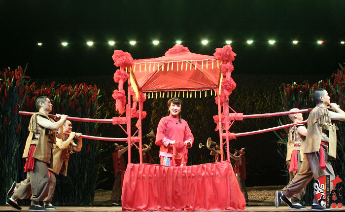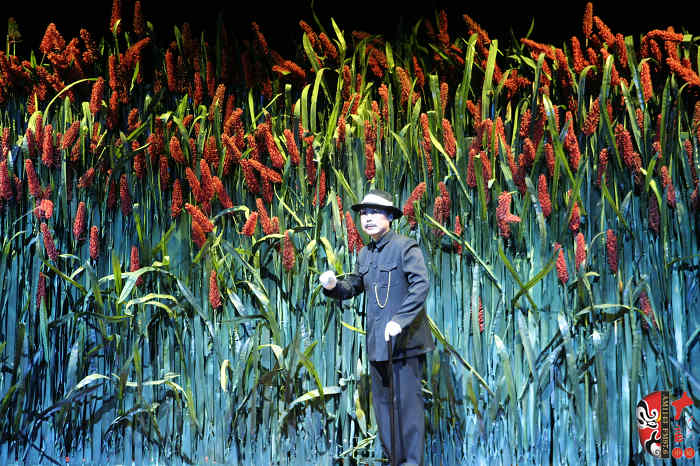 本劇以蓬蓬勃勃、充滿野性、有著旺盛生命力的紅高粱為意像,以九兒和十八刀的愛恨情仇為主線,描繪了上個世紀三、四十年代,先民們敢愛、敢恨、敢生、敢死的自由精神與生命氣度以及他們對入侵者不惜用鮮血和生命抗爭、可歌可泣而又悲壯慘烈的過程。最后九兒用高粱酒做炸藥,引爆了日本人的軍火車,軍火車的爆炸又扎爆了熟透了的高粱米,滿天都飄灑著絢麗的高粱花——這是他們的鮮血之花、靈魂之葩,更是他們精神的升華。