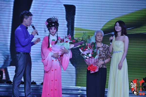 在6月16日舉辦的關(guān)小鳳個人戲曲專場中,關(guān)小鳳之女、24歲的張聰表演了豫劇《情斷狀元樓》“打神告廟”及《抬花轎》的“坐轎”兩折戲。畢業(yè)于河南省藝校的張聰現(xiàn)場表演稍顯稚嫩,但也獲得了觀眾的熱情鼓勵。張聰在接受記者采訪時說,自己戲校畢業(yè)之后到了福建省一閩劇團(tuán)工作,已經(jīng)有五、六年未接觸豫劇了。媽媽歷經(jīng)艱辛把自己帶大,特別不容易,這次為了支持媽媽的專場演出,她專程回河南、花十天時間趕排了兩折戲……在張聰表演完《抬花轎》的“坐轎”一折,一位身穿狀元紅袍、手捧鮮花、操南方口音的英俊小伙上臺向“周鳳蓮”求婚,經(jīng)張聰介紹,觀眾才豁然明白,英俊小伙乃她的老公,結(jié)婚時,媽媽關(guān)小鳳因為忙于工作未能參加,借此現(xiàn)場要補(bǔ)行跪拜大禮,以感謝母親的養(yǎng)育之恩。此情此景,讓現(xiàn)場不少觀眾為之動容。