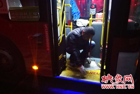 映象網(wǎng)訊(記者 燕子丹 文/圖)13日夜間,降雪如約而至。鄭州公交二公司全面啟動惡劣天氣應(yīng)急預(yù)案,應(yīng)急工作領(lǐng)導(dǎo)小組于13日夜間分赴各個公交場站,對公交車輛進(jìn)行安全檢查,在場區(qū)、站點等地鋪灑融雪劑,保證車輛第二天能夠安全上路。