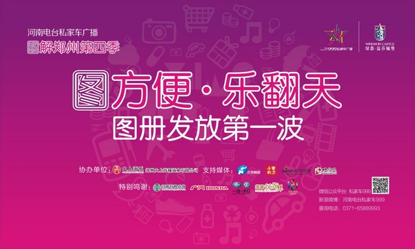 河南電臺私家車廣播2013大型公益系列活動——“圖解鄭州”第四季“圖方便·樂翻天”,圖冊發(fā)放第二波將于2013年9月8日在鄭州市東風(fēng)路與天明路交匯處的天旺優(yōu)庫和商都路與七里河南路交匯處的華豐燈飾界免費發(fā)放。