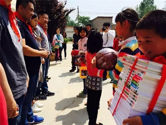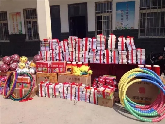 根據(jù)孩子們的現(xiàn)實(shí)需求和愿望,我們此次特別為孩子帶來(lái)了千本圖書以及腰鼓樂(lè)器、足球等體育用品,并捐獻(xiàn)給學(xué)校。
