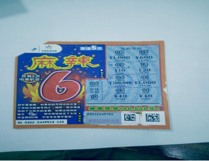 “麻辣6”玩法簡單。刮開覆蓋膜,如果你的號碼中的任意一個號碼與中獎號碼之一相同,即中得該號碼下方所示的金額;如果出現(xiàn)辣椒標志,即中得該標志下方所示金額的6倍。獎金兼中兼得。(李棟)