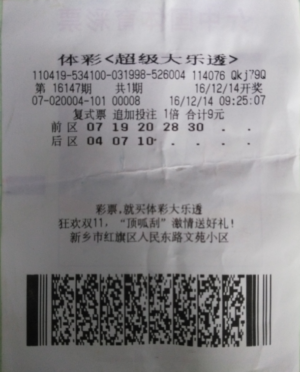 據(jù)尚先生介紹,他每次購買彩票都是自己根據(jù)走勢圖和感覺進(jìn)行選號,復(fù)式投注是他的最愛。近期“大樂透”一等獎頻出,而復(fù)式投注命中一等獎的幾率更是非常高。尚先生說:“我每次購買‘大樂透’都不會忘記追加,追加投注帶來的獎金對于復(fù)式票是非??捎^的?!鄙邢壬ㄟ^復(fù)式追加票共獲得本期中獎獎金也達(dá)到了5萬多元。