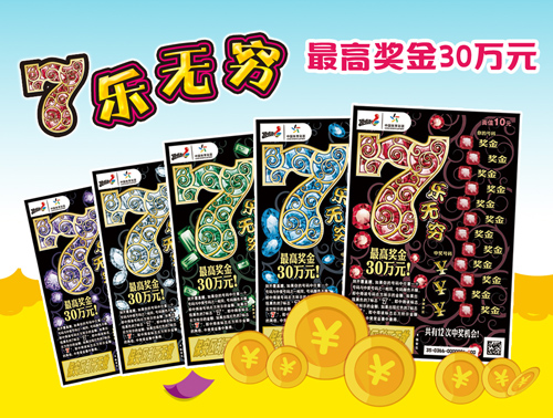 [摘要] 近日,“頂呱刮”家族又一新成員——“7樂(lè)無(wú)窮”火熱登陸我省,此票是一款數(shù)字類主題即開(kāi)票,面值10元,頭獎(jiǎng)30萬(wàn)元,共有12次中獎(jiǎng)機(jī)會(huì)。
