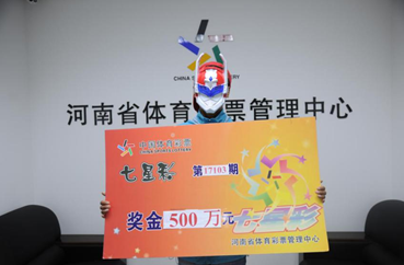 無獨有偶,昨天下午,來自溫縣的崔先生也來到省體彩中心兌獎。他憑借一張10元5注單式票命中七星彩第17103期全國唯一一注500萬元大獎。