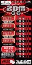 “20倍現(xiàn)金”單張彩票共有20次中獎(jiǎng)機(jī)會(huì),最高獎(jiǎng)金100萬(wàn)元。票面共有五組游戲,簡(jiǎn)單易玩、新鮮刺激。其中,主游戲?yàn)椋汗伍_覆蓋膜,在任意一場(chǎng)游戲中,如果你的號(hào)碼與中獎(jiǎng)號(hào)碼相同,即中得該場(chǎng)游戲右方所示的金額;如果在任意一場(chǎng)游戲中,出現(xiàn)倍數(shù)標(biāo)志“2X,3X,5X,10X或20X”,即中得該場(chǎng)游戲右方所示金額乘以該場(chǎng)游戲所出現(xiàn)的倍數(shù)。其它四場(chǎng)幸運(yùn)游戲分別為:在幸運(yùn)游戲區(qū)刮開覆蓋膜,如果出現(xiàn)兩個(gè)相同的標(biāo)志,分別可中得50元、100元、200元和500元。所有游戲中獎(jiǎng)獎(jiǎng)金兼中兼得。