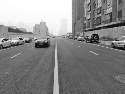 昨日上午11點(diǎn)30分,記者驅(qū)車從東明路緯四路口右轉(zhuǎn)向東進(jìn)入緯四路(東明路未來路段)(如右圖),只見嶄新的瀝青路面已完全鋪好,道路為雙向四車道,東西方向已經(jīng)有很多機(jī)動車開始從這里“嘗鮮”。