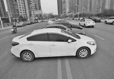 機(jī)動(dòng)車(chē)道的雙黃線上成了停車(chē)場(chǎng)