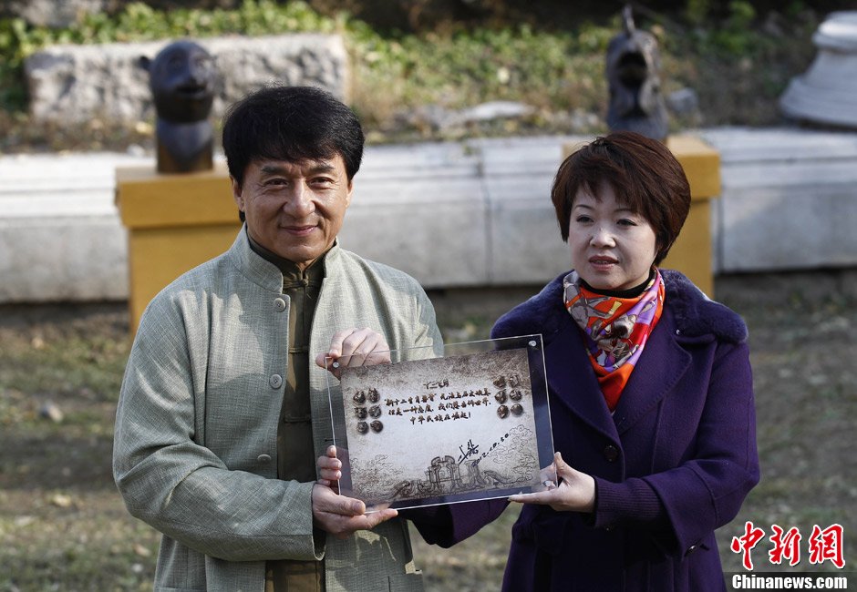 2012年10月30日,國際影星成龍在北京圓明園舉行儀式,將在電影《十二生肖》中的“十二獸首”捐贈給圓明園管理處。
