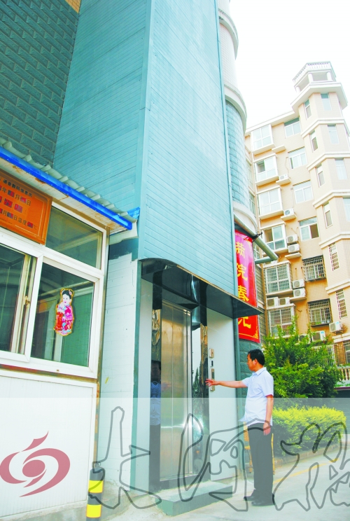 “裝電梯前,我曾問過樓下鄰居,希望他們共同參與,以便今后共同使用,但6樓以下的鄰居不同意,所以目前電梯只有俺一家在使用。”“裝電梯在不妨礙他人安全的同時也是為了改善自己居住條件,如果我有錢也會這么做!”居民劉女士表示。(記者 李嵐 文圖)