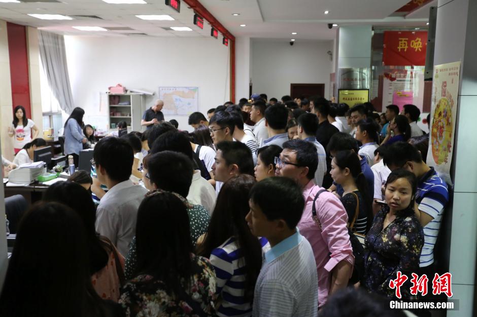 5月20日,河南鄭州,一對準新人領完結婚證后秀自拍。因諧音“我愛你”,“5.20”被稱網絡情人節(jié),這一天受到眾多準新人追捧,紛紛扎堆辦理結婚證。一大早,鄭州市金水區(qū)民政局婚姻登記處門前就排起了數百米的長隊。由于前來辦證新人太多,場面火爆,金水區(qū)民政局專門開通綠色通道受理結婚登記證,并延長下班時間應對辦證高峰。楊正華 攝【更多】