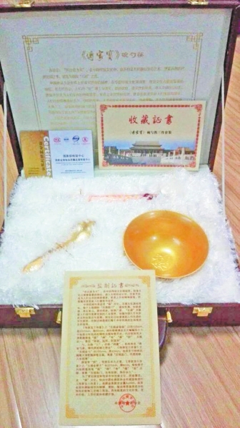 記者在經(jīng)三路和緯二路交叉口一小區(qū)內(nèi),見到了劉大媽領(lǐng)回的禮品。除大米、食用油、蜂蜜、刀具外,劉大媽還領(lǐng)了保健鞋、軟玉墊、治療儀、金碗筷,以及向天果、靈芝口服液保健品。其中僅兩盒口服液商家要了1萬元,其余全為贈品。劉大媽老伴說,他咨詢了專業(yè)人士,贈品加起來不值幾百元,口服液在藥店一盒也僅售幾百元,而在網(wǎng)上類似于靈芝口服液的產(chǎn)品一盒只要100多元。他拿起商家送的金碗,用手一摳,表層金黃色便被摳掉。