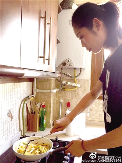 朱婷在做飯
