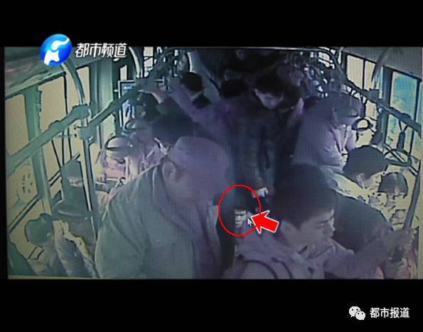這是發(fā)生在鄭州市B12路公交車上的監(jiān)控視頻畫面,上午十點多,車廂內(nèi)的乘客很多。