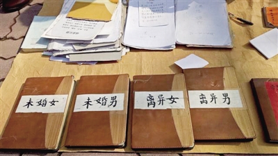 做職業(yè)紅娘的這15年,在張玲這里登記的青年男女已多達上萬人,資料摞起來有一人多高。