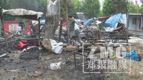 現(xiàn)場(chǎng)村民介紹,火災(zāi)發(fā)生時(shí)附近有人正在做滿(mǎn)月酒,屋頂電線突然“噼啪”作響,火星濺下引燃了安置區(qū)的簡(jiǎn)易房,失火房屋內(nèi)放置有生產(chǎn)包的設(shè)備和成捆的布匹。