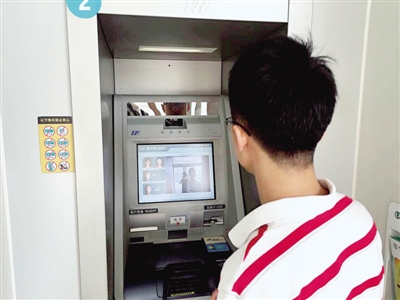 昨日,記者來到農業(yè)銀行鄭州鄭東支行,在二樓營業(yè)大廳,擺放了一臺能夠識別人臉系統(tǒng)的ATM機,這臺機器同時也可以進行有卡操作。從外觀看,與平時常用的ATM機相比,這臺機器機身稍大,屏幕的右上方顯示有“刷臉取款”字樣。