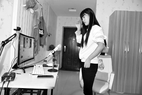 她在出租屋里做直播