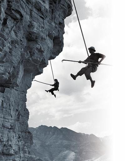 和楊貴第二次見面是在1960年2月,春節(jié)剛過,寒風(fēng)凜冽刺骨,那時(shí),魏德忠去林縣采訪山區(qū)建設(shè)情況,車行至山腳下,當(dāng)聽到崖上開鑿打洞的聲音時(shí),循聲望去,只見一個(gè)個(gè)腰系繩索,懸掛在崖壁上的開鑿巖石的身影??吹蕉嗳苏谛藿ㄋ恼鸷硤雒妫貏e激動(dòng),“這不是當(dāng)年的愚公移山嗎?”
