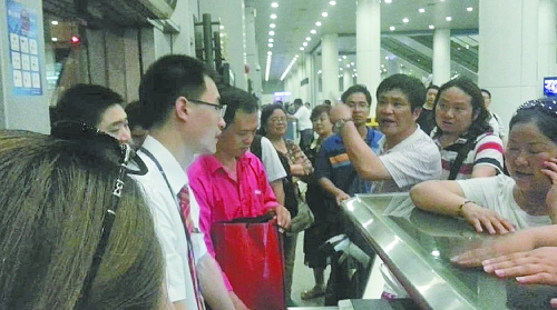 據(jù)周女士介紹,15日因航班遭遇威脅信息,深圳寶安機場航班出現(xiàn)大面積延誤,其中有兩個航班是飛往鄭州的,“按正常計劃,ZH9329次航班應(yīng)下午4點20分起飛,ZH9949次航班應(yīng)下午6點半起飛。兩航班都延誤,目的地都是鄭州,后來深航把這兩個航班的乘客合到了一起”。