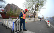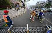 2014年4月2日,北京長安街上多個(gè)路口增設(shè)了封機(jī)動(dòng)車護(hù)欄,紅燈時(shí)非機(jī)動(dòng)車護(hù)欄拉起,防止非機(jī)動(dòng)車闖紅燈。圖為綠燈亮起,護(hù)欄打開正常通行。